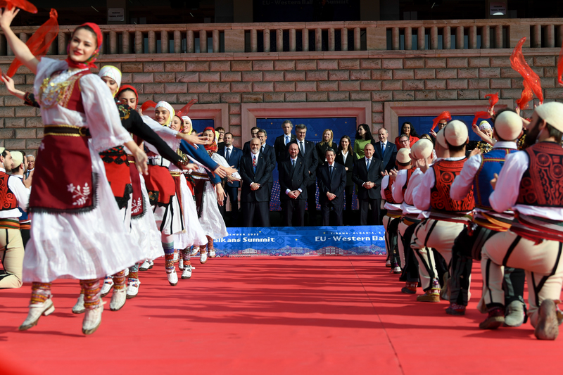 Emmanuel Macron, Olaf Scholz, Von der Leyen dhe emra të tjerë të njohur të politikës evropiane, kanë duartokitur vallen e performuar me këngë shqiptare, teksa dhjetëra politikanë pjesëmarrës në Samitin BE-Ballkani Perëndimor, po rrinin bashkë për foton familjare të Samitit.
