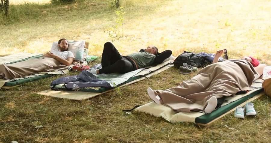 Disa garues u shtrinë nën një pemë në Breznë për të nisur maratonën e tyre të pushimit.