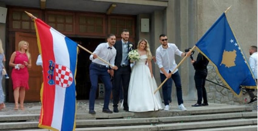 Flamuri i Kosovës dhe ai kroat në dasmë, shkëlqim i rrallë, një festë mes dy popujve, e mahnitshme.