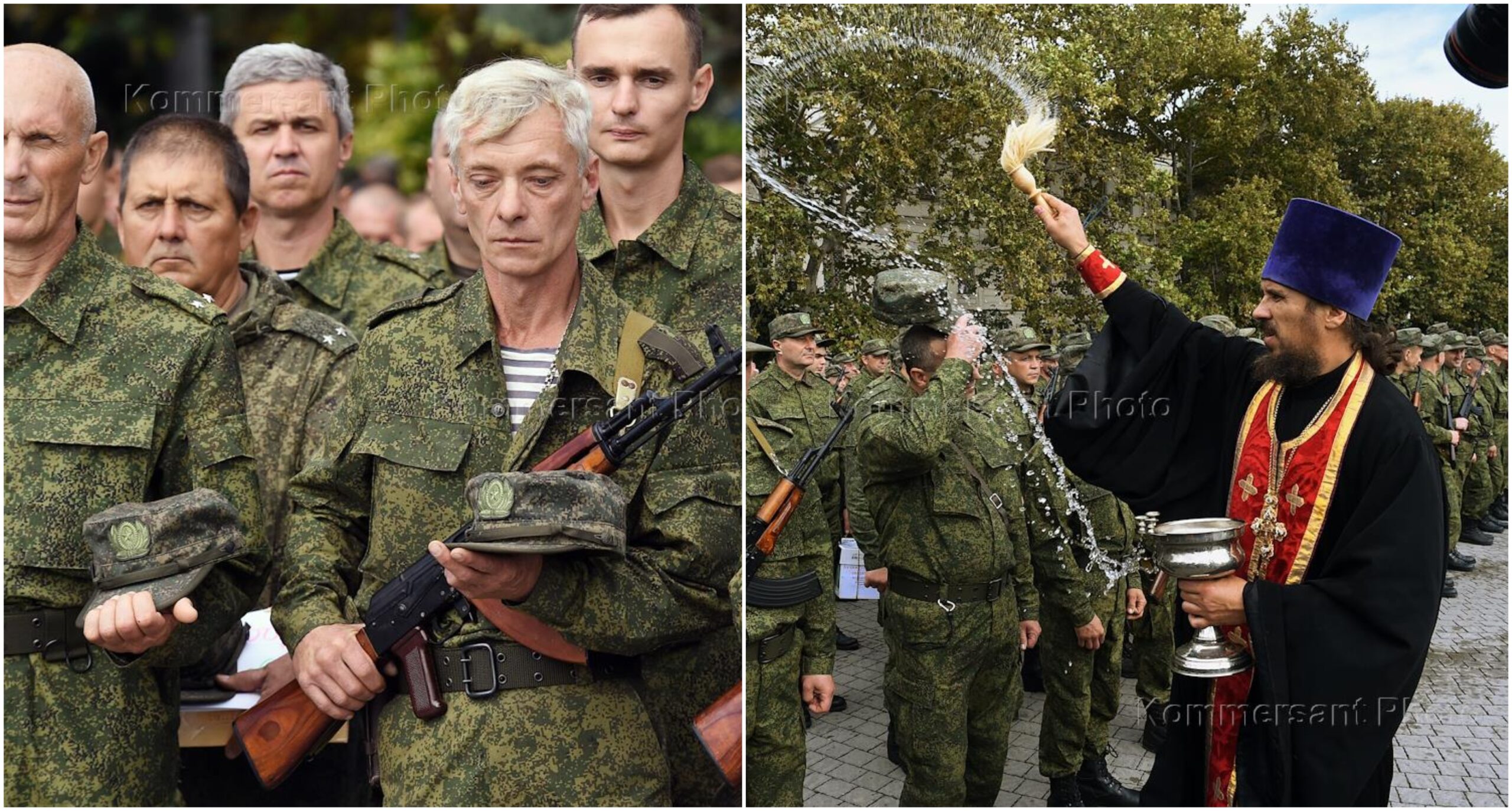 Fotot nga Sheshi Nakhimov, Sevastopol, në Republikën e Krimesë tregojnë një ceremoni të dërgimit të qytetarëve të mobilizuar në vijat e frontit.