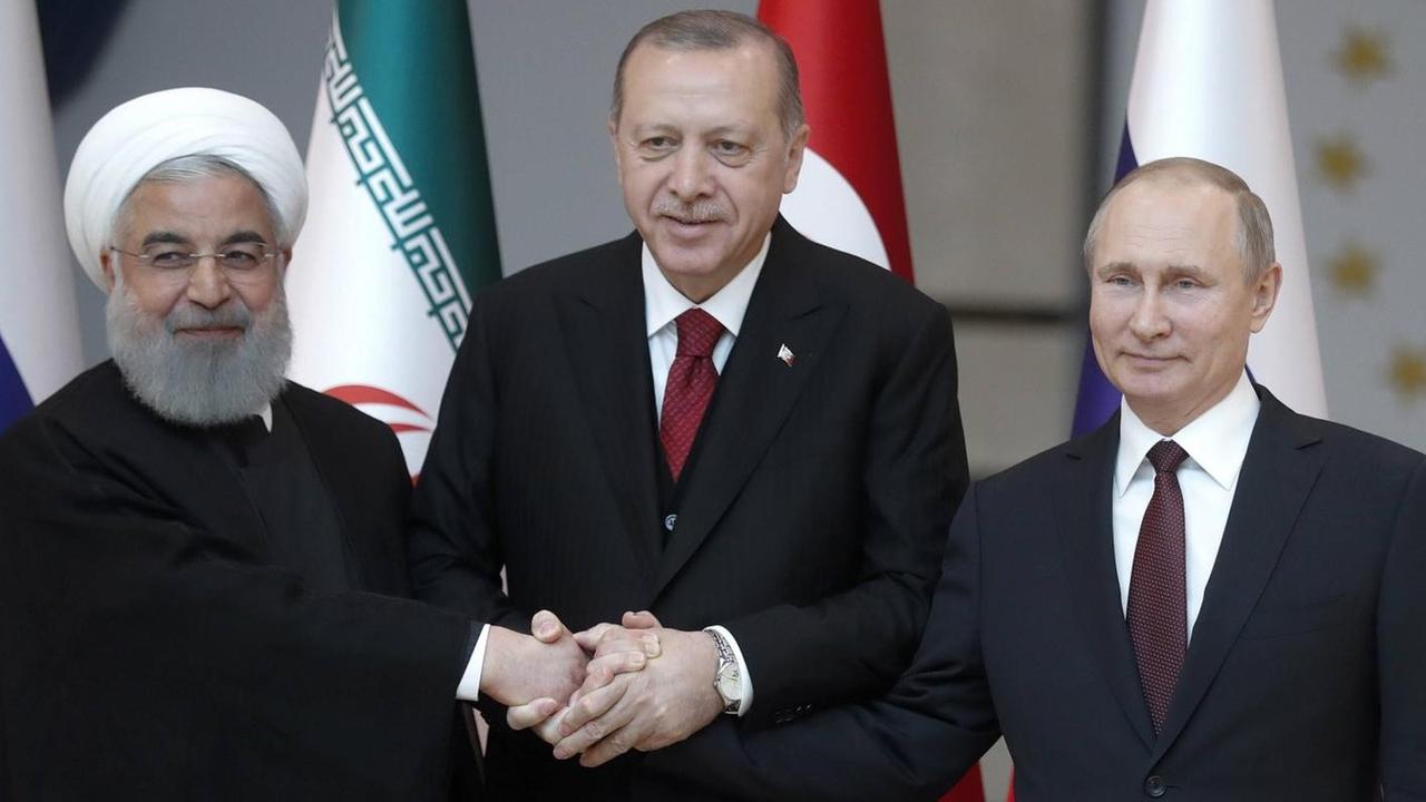 Hassan Rouhani, Recep Tayyip Erdoğan und Wladimir Putin beim Syrien-Gipfel in Ankara © imago/Mikhail Metzel/TASS