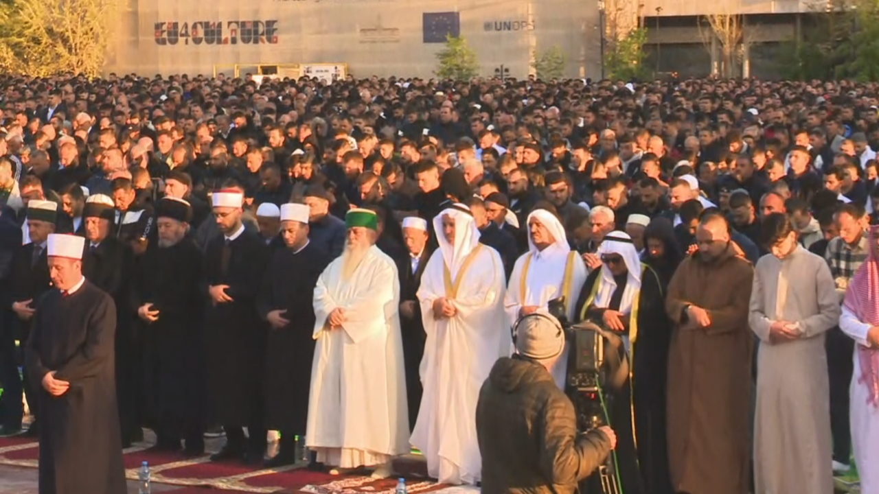 Ashtu edhe si çdo vit, besimtarët shqiptarë u mblodhën sërish në sheshin Skënderbej për të falur namazin, i cili u drejtua nga Kreu i KMSH, Bujar Spahiu.