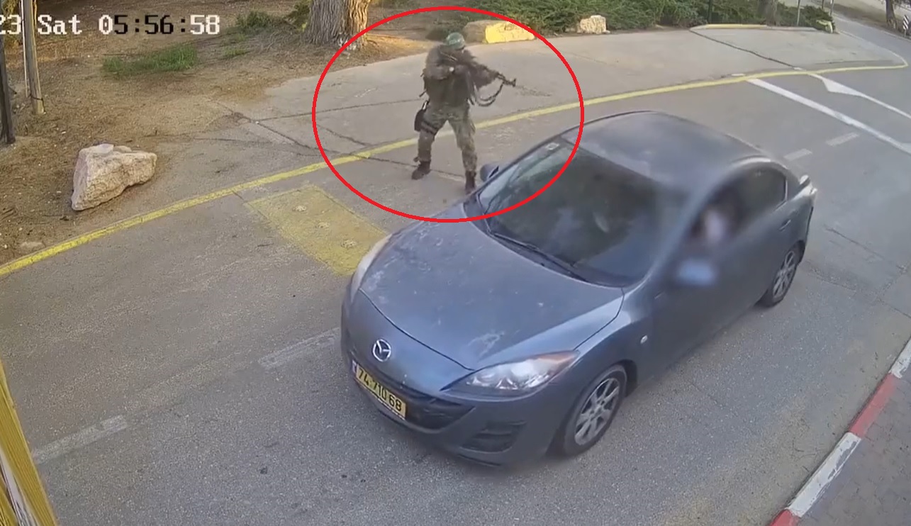 Pamjet nga sulmi në Kibbutz Be’eri, ku mbi 100 izraelitë u vranë nga terroristët Hamasit. Në këtë video mund të shihni momentet rrëqethëse kur terroristët e Hamasit iu afruan portës kryesore të kibucit. Pasi përpjekja e tyre fillestare për të thyer portën dështoi, ata pritën me durim mbërritjen e një automjeti civil, i zunë pritë dhe u morën jetën të gjithë pasagjerëve.