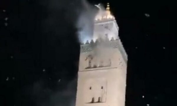 Një prej përdoruesve të rrjetit social X, ka regjistruar momentin kur minarja e xhamisë së vjetër 850 vite në Marok, shkundet nga dridhjet e fuqishme.