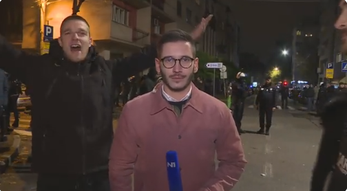 Televozioni N1 ka publikuar pamje të twitter ku thotë se të djathtët prenguan reporterin duke bërtitur kundër emigrantëve dhe duke përkrahur kriminelin Ratko Mlladiq.