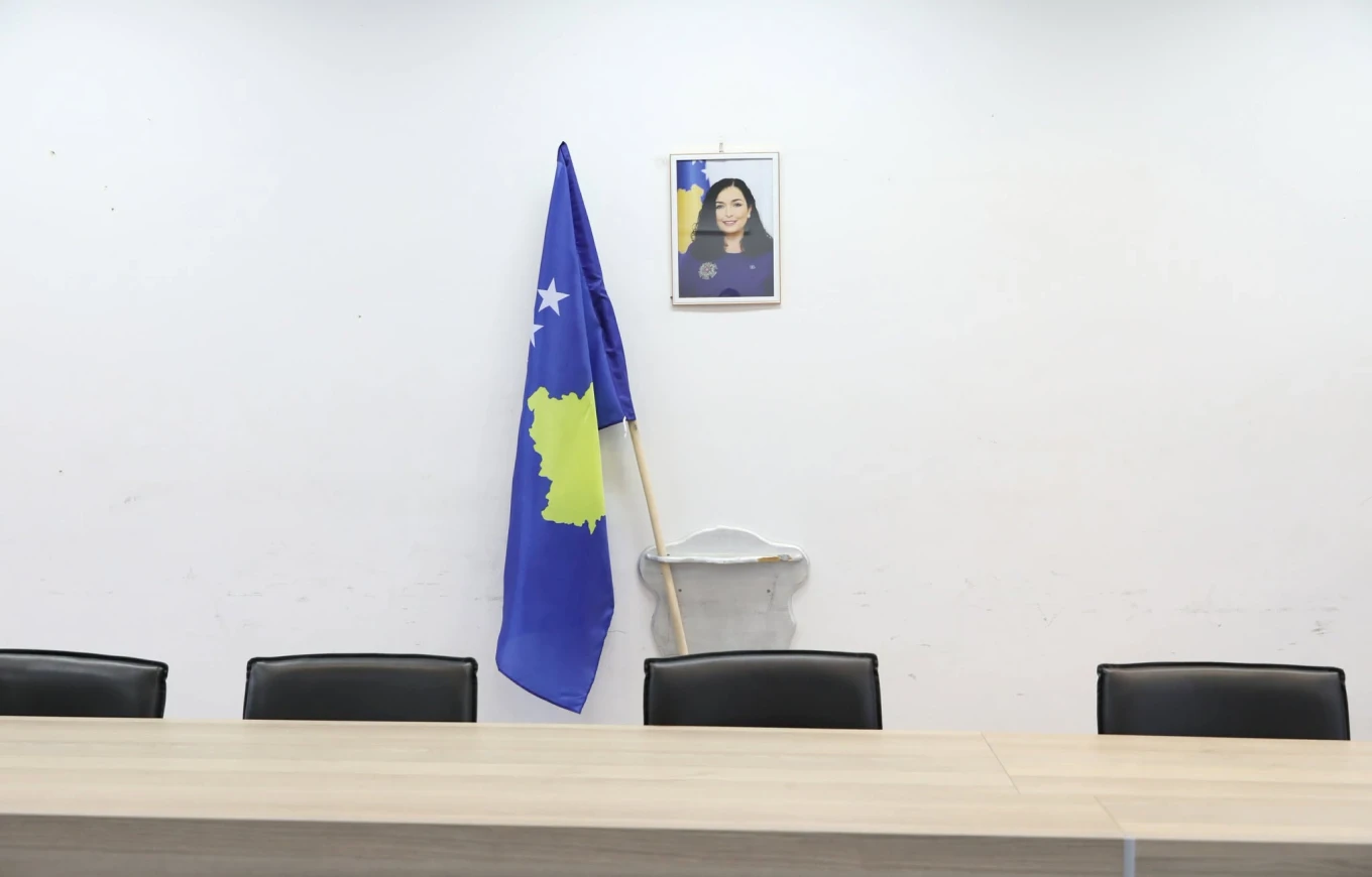 Deri tash, para fillimit të inaugurimeve, shihet se gjithçka është gati, bashkë me flamujt e Kosovës e fotografia e presidentes në salla.
