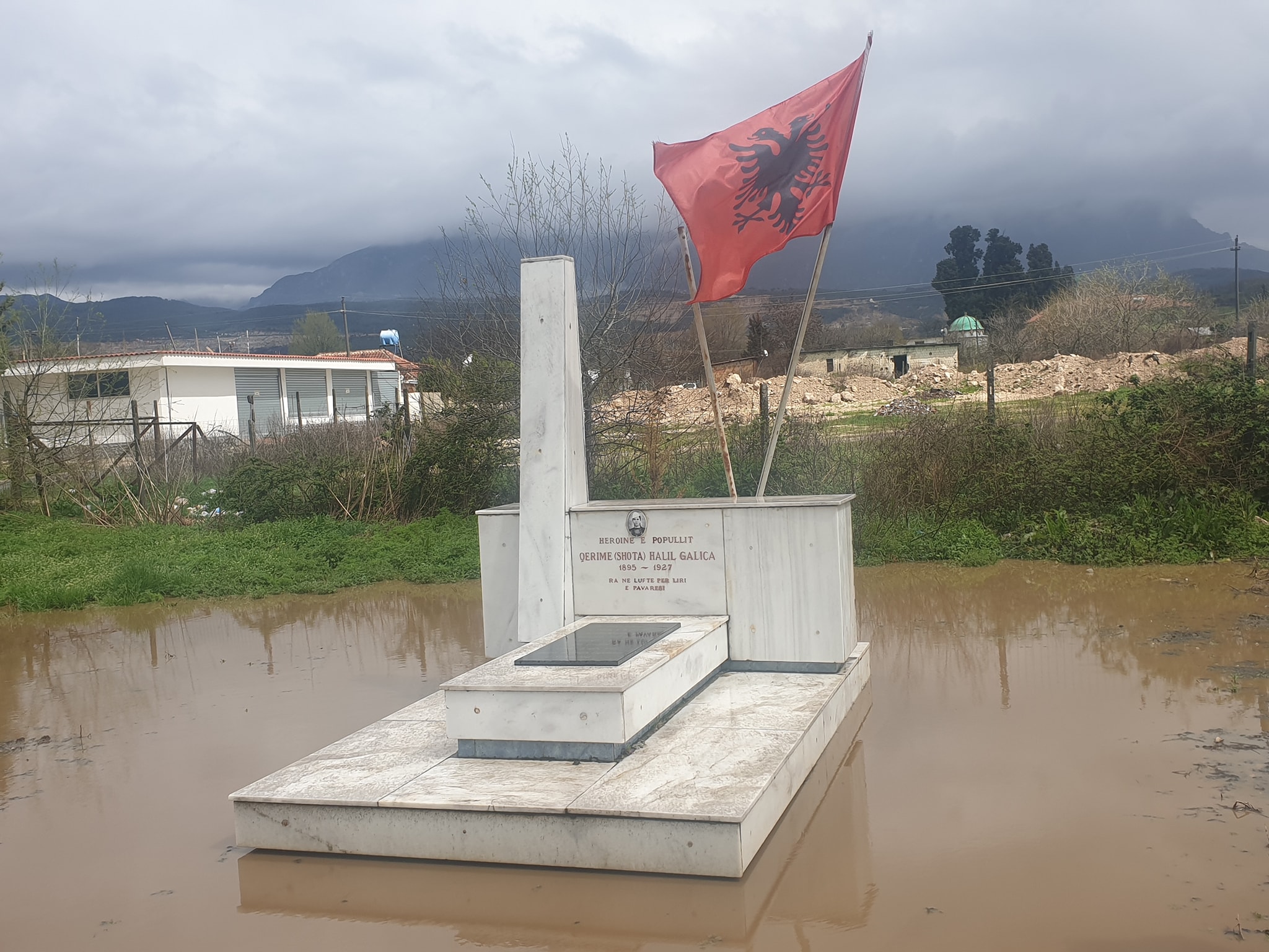Nga pamjet e publikuara nga njeriu i afërt i Ibrahim Rugovës, Adnan Merovci, shihet hapësira përreth varrit të heroinës, e mbuluar me ujë pas reshjeve të shiut.