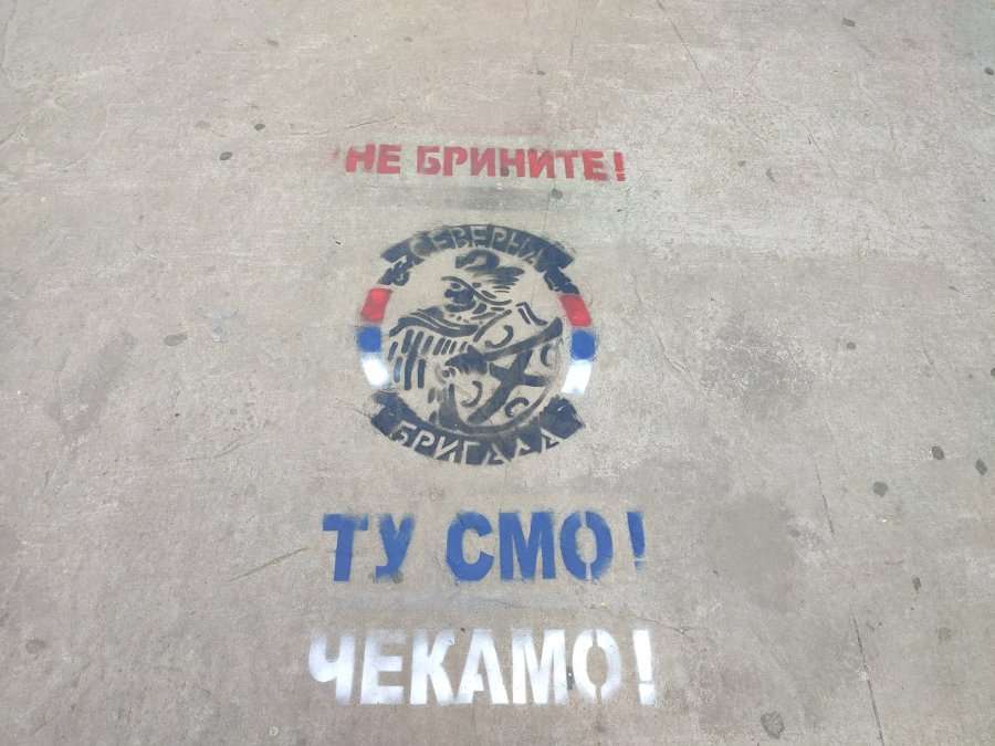 Grafiti është nënshkruar nga “Brigada e Veriut”, me një logo në të cilën mund të shihet edhe një kryq me katër ‘S’, që është simboli kombëtar serb, i cili gjendet edhe në flamurin e Serbisë.