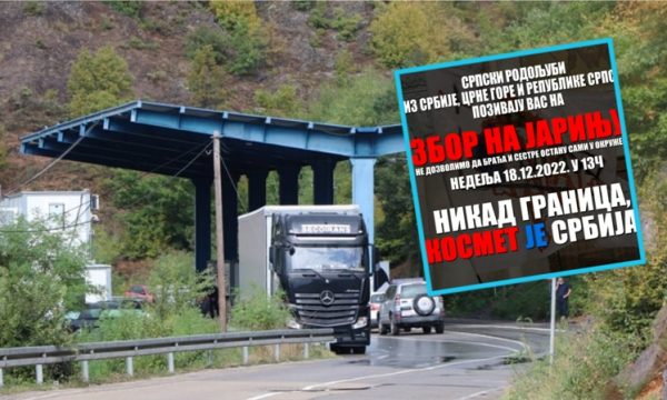 Në thirrjen e tyre luten “të gjithë patriotët serbë nga Serbia, Mali i Zi, Republika Srpska, ju thërrasin për tubim në Jarinje. Mos lejoni që motrat e vëllezërit tanë të qëndrojnë të vetëm nën rrethim. Të dielën me 18 dhjetor.”