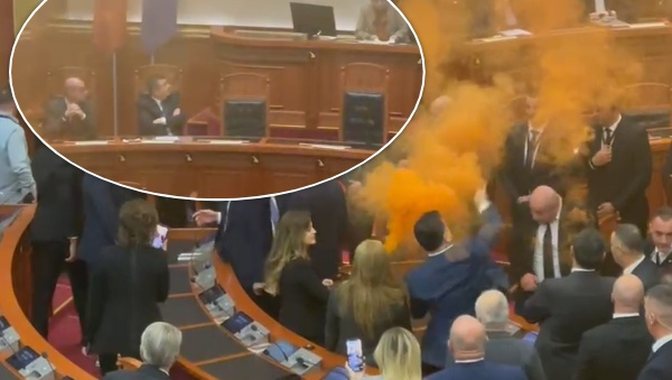 Noka ndezi disa flakadanë dhe në një video shihet duke hedhur një prej tyre në drejtim të kryeparlamentares Lindita Nikolla.