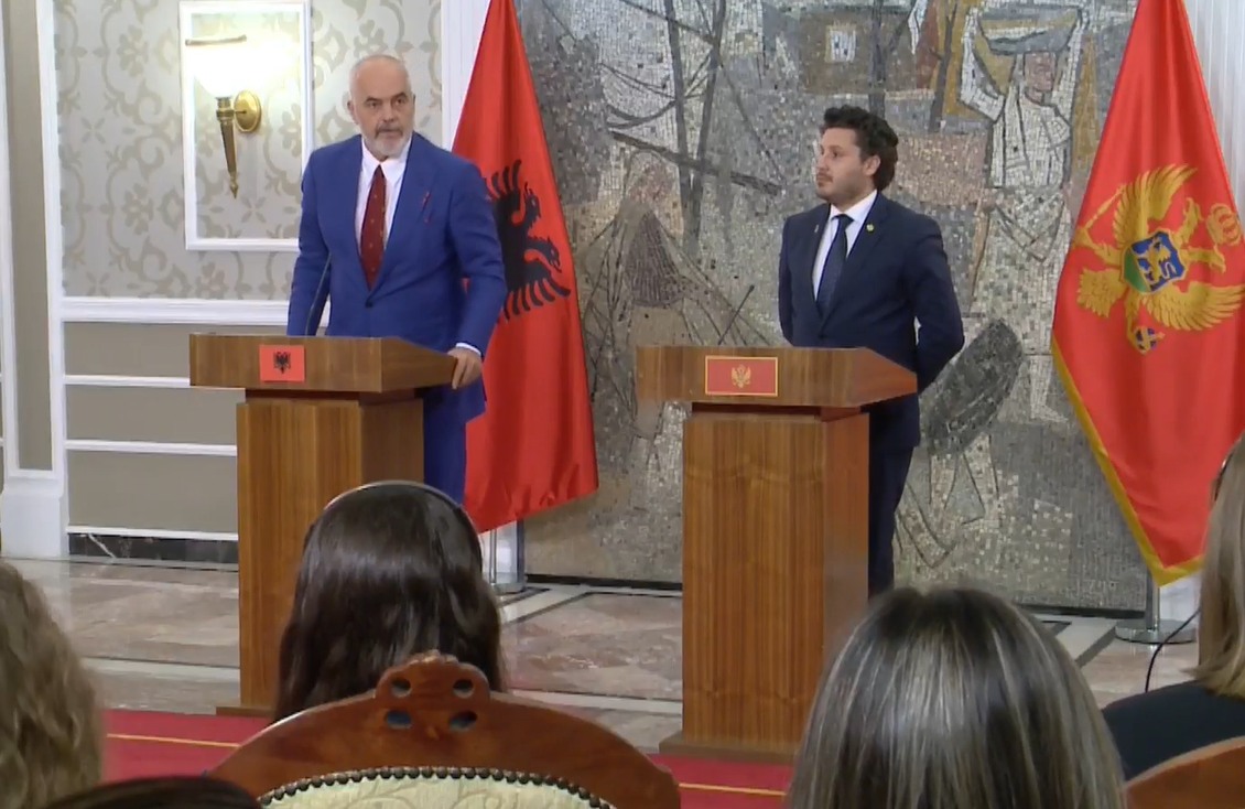 Kryeministri Edi Rama gjatë konferencës së përbashkët për shtyp me kryeministrin e Malit të Zi Dritan Abazoviç në Podgoricë, tha se Shqipëria dhe Mali e Zi janë në një linjë politike kundër çdo konflikti në rajon.