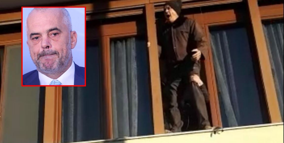 Siç duket edhe nga pamjet e mëposhtme, i moshuari ka hipur në parmakun e dritares, ndërsa disa persona të tjerë e mbajnë nga këmbët që të mos bjerë nga kati i dytë.