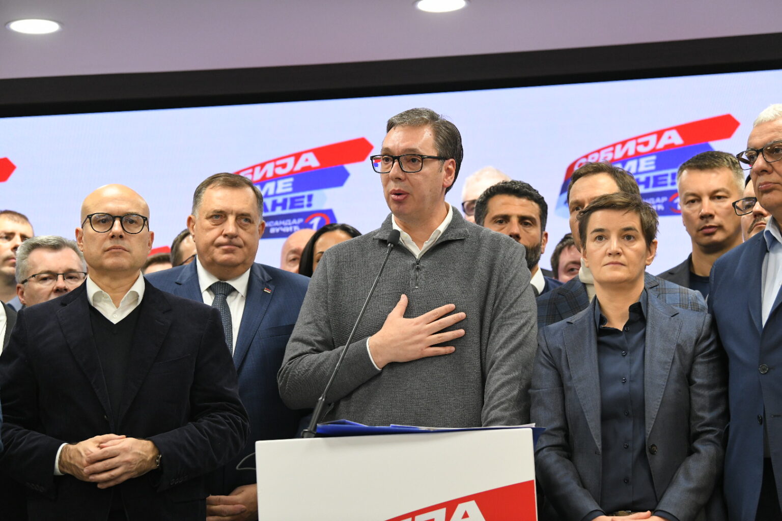 Beograd 17. decembar 2023. Izborna noć, parlamentarni i lokalni Izbori 2023 u Srbiji Izborni stab SNS Srpska napredna stranka Foto:Amir Hamzagić/Nova.rs