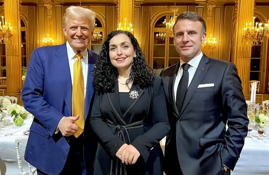 Presidentja e Kosovës Vjosa Osmani ka postuar një fotografi në Facebook, ku shihet mes presidentit të zgjedhur të SHBA’së, Donald Trump, dhe presidentit të Francës, Emanuel Macron.