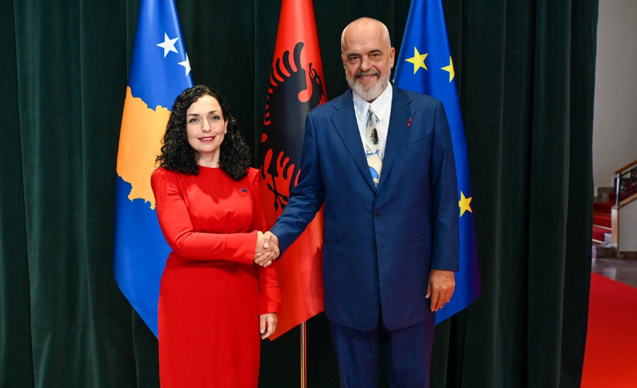 Presidenetja e Kosovës, Vjosa Osmani është mirëpritur në Shqipëri nga kryeministri i Shqipërisë, Edi Rama.