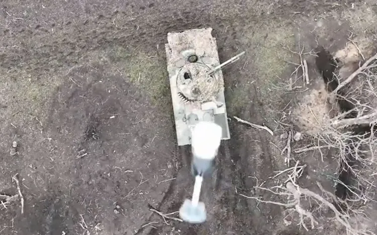 Në pamjet që u filmuan nga lartësia, shihet predha që trupat ukrainase e hodhën, duke i rënë ushtarit rus mbi kokë. Ushtari më pas shihet i gjakosur, derisa tanku vazhdon të lëvizë pa kontroll.