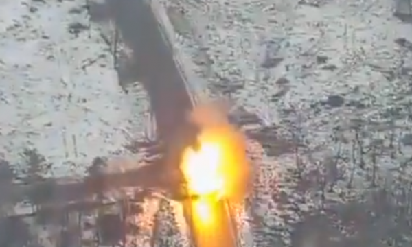 Një video-incizim nga droni shfaq goditjen që e merr tanku rus nga arma anti-tank Javelin.