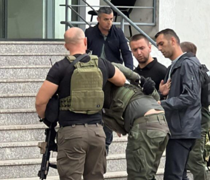 Një nga sulmuesit arrestuar në fshatin Banjskë, është sjellë nga Policia e Kosovës në Stacionin policor në Mitrovicë të Jugut.