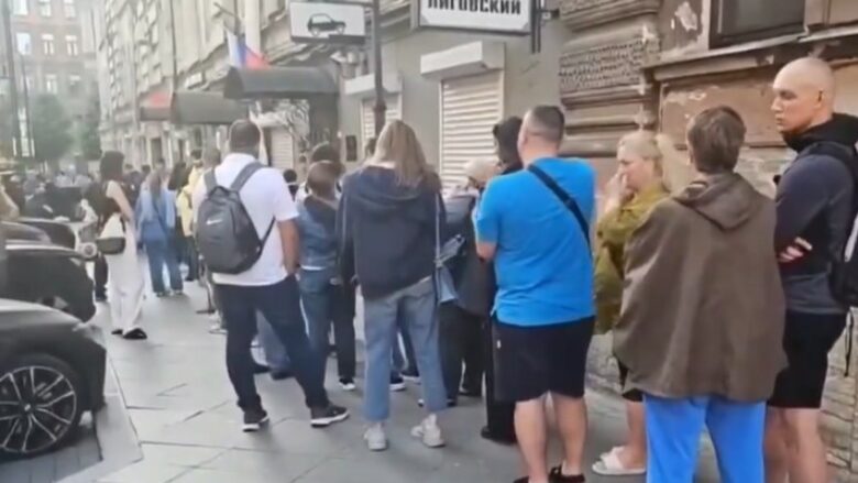 Tregtimi i valutave në bursën e Moskës është ndalur dhe njerëzit po mblidhen para bankave për të tërhequr kursimet e tyre, nga frika se rubla do të humb vlerën.