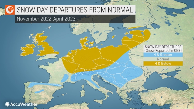 Pjesë të Francës dhe Gjermanisë mund të priren në anën më të thatë në krahasim me vendet në të gjithë Poloninë, thonë parashikuesit e AccuWeather, duke përfshirë qendrat e metrosë së Parisit dhe Berlinit. Sasia e reshjeve të shiut dhe borës këtë dimër pritet të jetë nën normale në Francën veriore dhe Gjermani, por mund të jetë afër normales në Poloni.