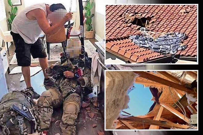 Një vrimë e madhe u hap në çatinë me tjegulla të shtëpisë njëkatëshe, ku ushtari ra nëpër papafingo dhe në kuzhinë.