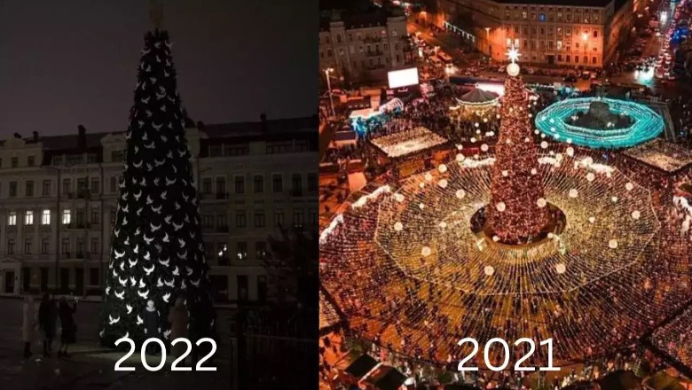 Një postim i shpërndarë nga një përdorues i Twitter-it tregoi ndryshimin masiv në festimet e Krishtlindjeve të vendit këtë vit në krahasim me vitet e mëparshme. Në foto, Maidan Nezalezhnosti i Kievit, i njohur gjithashtu si Sheshi i Pavarësisë, është zbukuruar me një pemë Krishtlindjeje që ka dekorime që ngjasojnë me pëllumbat. Dekorimet e zbehta dhe rruga e errët ku është vendosur pema flasin shumë për gjendjen e pafuqishme të vendit.