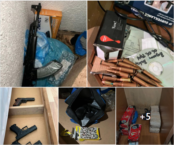 Në shtëpinë e të dyshuarit, Policia thotë se hasi në “një arsenal armësh që posedonte personi i dyshuar”.