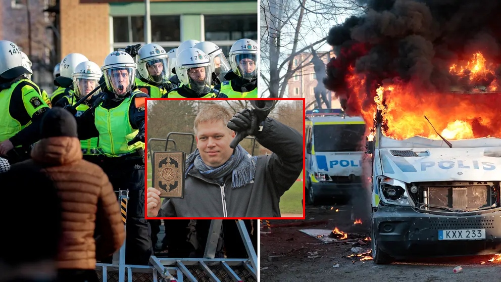 Pamjet nga vendi i ngjarjes në qytetin e Linkoping në bregun lindor të Suedisë tregonin një makinë që digjej teksa dhjetëra njerëz të maskuar sulmuan makinat e policisë.