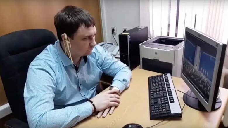 Fotoja e Mikhail Abdalkin që e tregon atë duke dëgjuar fjalimin e Putinit më 21 shkurt me shpageti në veshë u bë virale në internet.