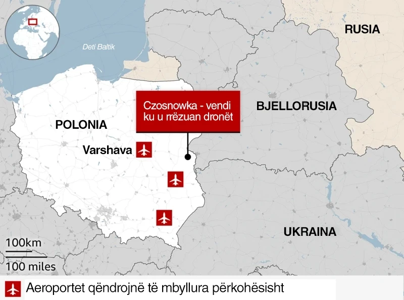 Zyrtarët polakë kanë thënë mëngjesin e së mërkurës se 19 dronë rusë kanë hyrë në hapësirën ajrore të vendit gjatë natës.