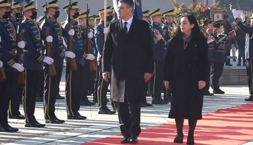 Presidentja e Republikës së Kosovës, Vjosa Osmani, e ka pritur me ceremoni shtetërore presidentin e Republikës së Kroacisë, Zoran Milanoviç.