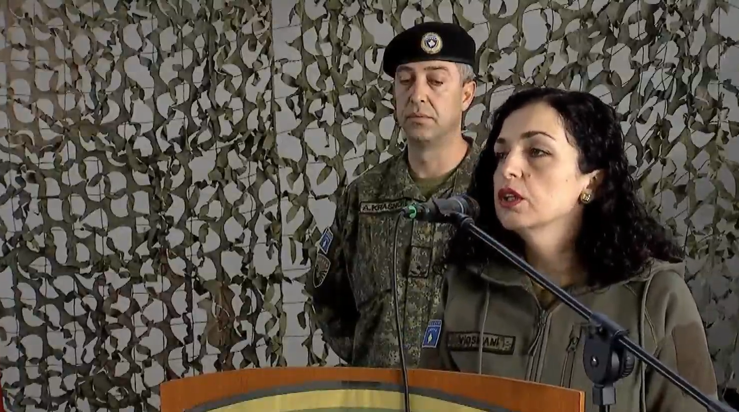 Osmani në adresimin e saj kishte një dukje më ndryshe, ajo kishte veshur rroba ushtarake.