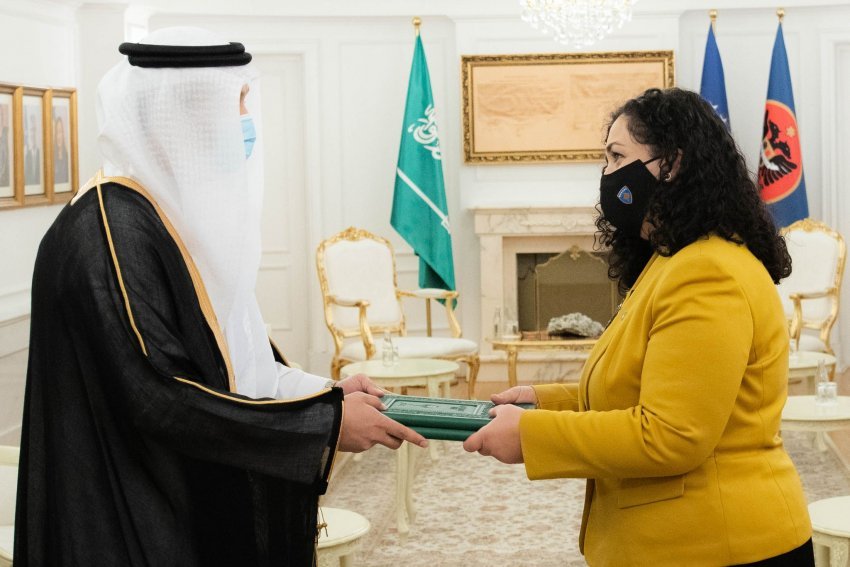 Presidentja e Republikës së Kosovës, Vjosa Osmani priti sot në takim ambasadorin e ri, jorezident të Mbretërisë së Arabisë Saudite në Republikën e Kosovës, Faisal Ghazi Ismail Hifzi, me rastin e dorëzimit të letrave kredenciale.