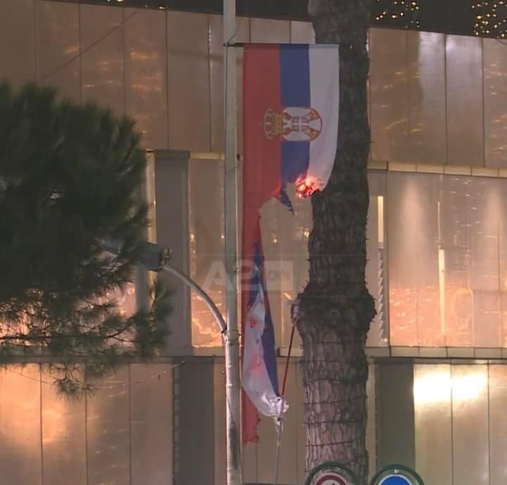 Në mbyllje të protestës kundër Ballkanit të Hapur para kryeministrisë, protestuesit i vunë flakën edhe një flamuri serb të vendosur përgjatë Bulevardit Dëshmorët e Kombit.