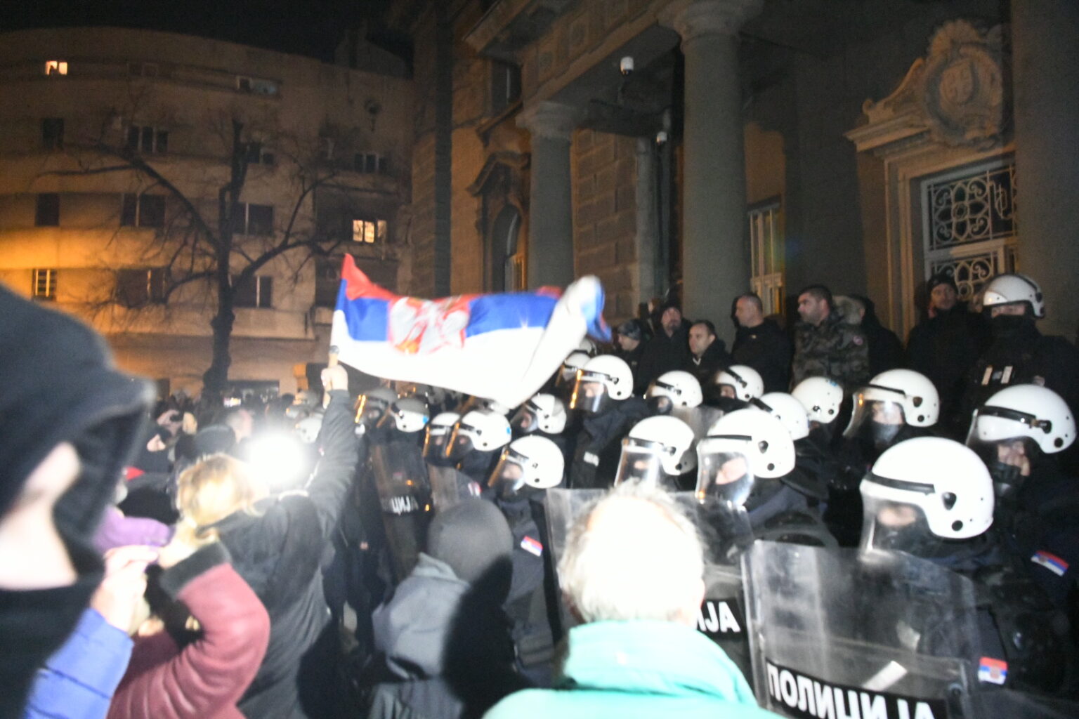 Xhandarmëria serbe i ndaloi ata që të hynin në ndërtesën e Presidencës serbe.