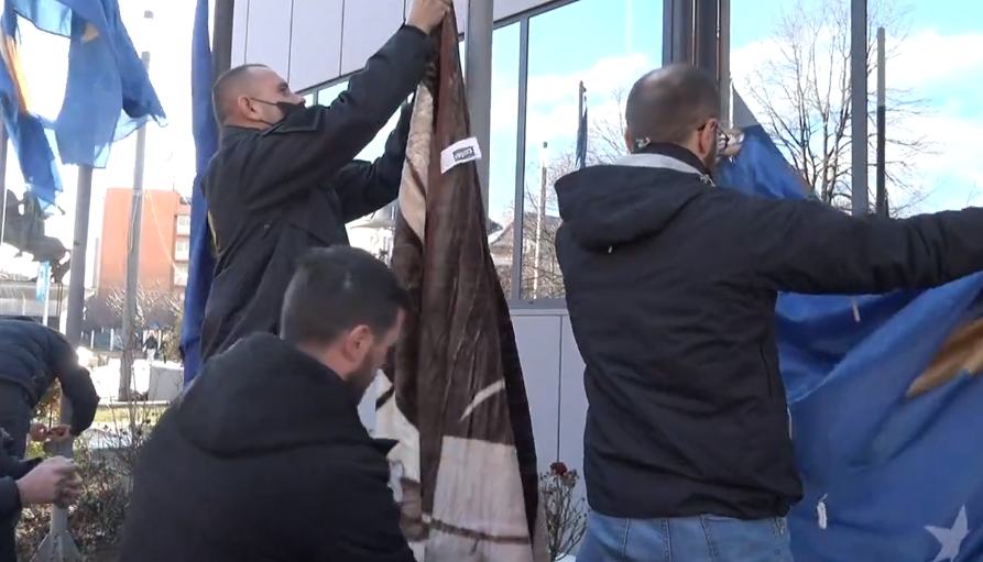Partia Socialdemokrate ka larguar flamurin e Kosovës nga oborri i Qeverisë dhe e ka zëvendësuar atë me një batanije.