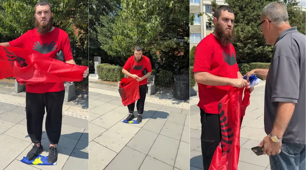Një qytetar nga Tirana ka shkelur e flamurin e Kosovës në qendër të Prishtinës.