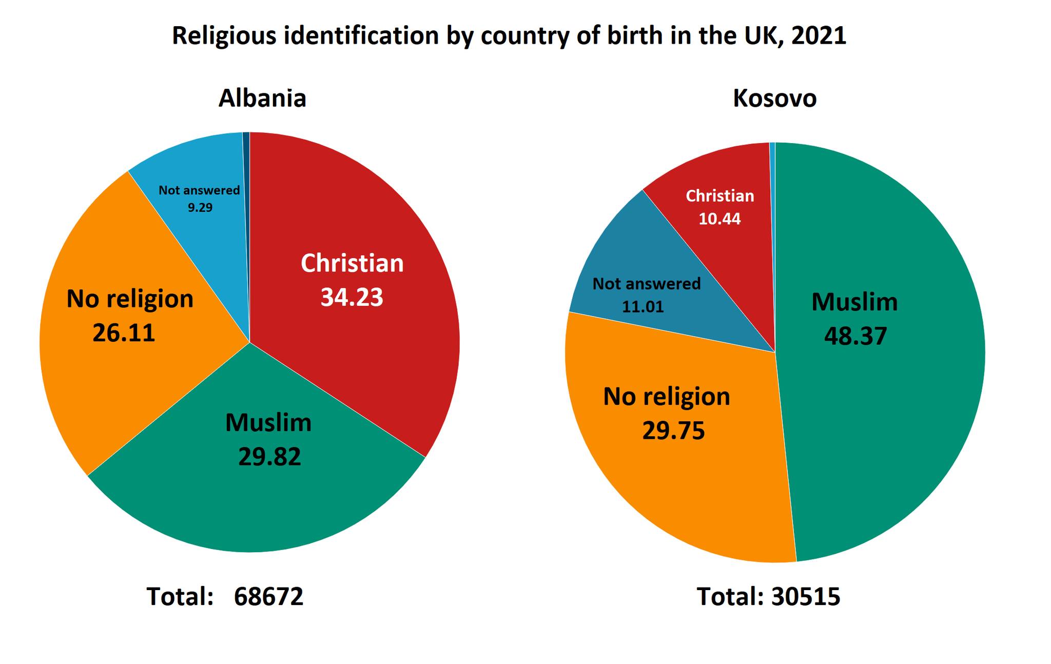 Sipas tyre, prej 30 mijë kosovarëve që banojnë atje, 48 për qind kanë deklaruar se janë myslimanë, 30 për qind kanë thënë që janë të pafe dhe 10 për qind të krishterë.
