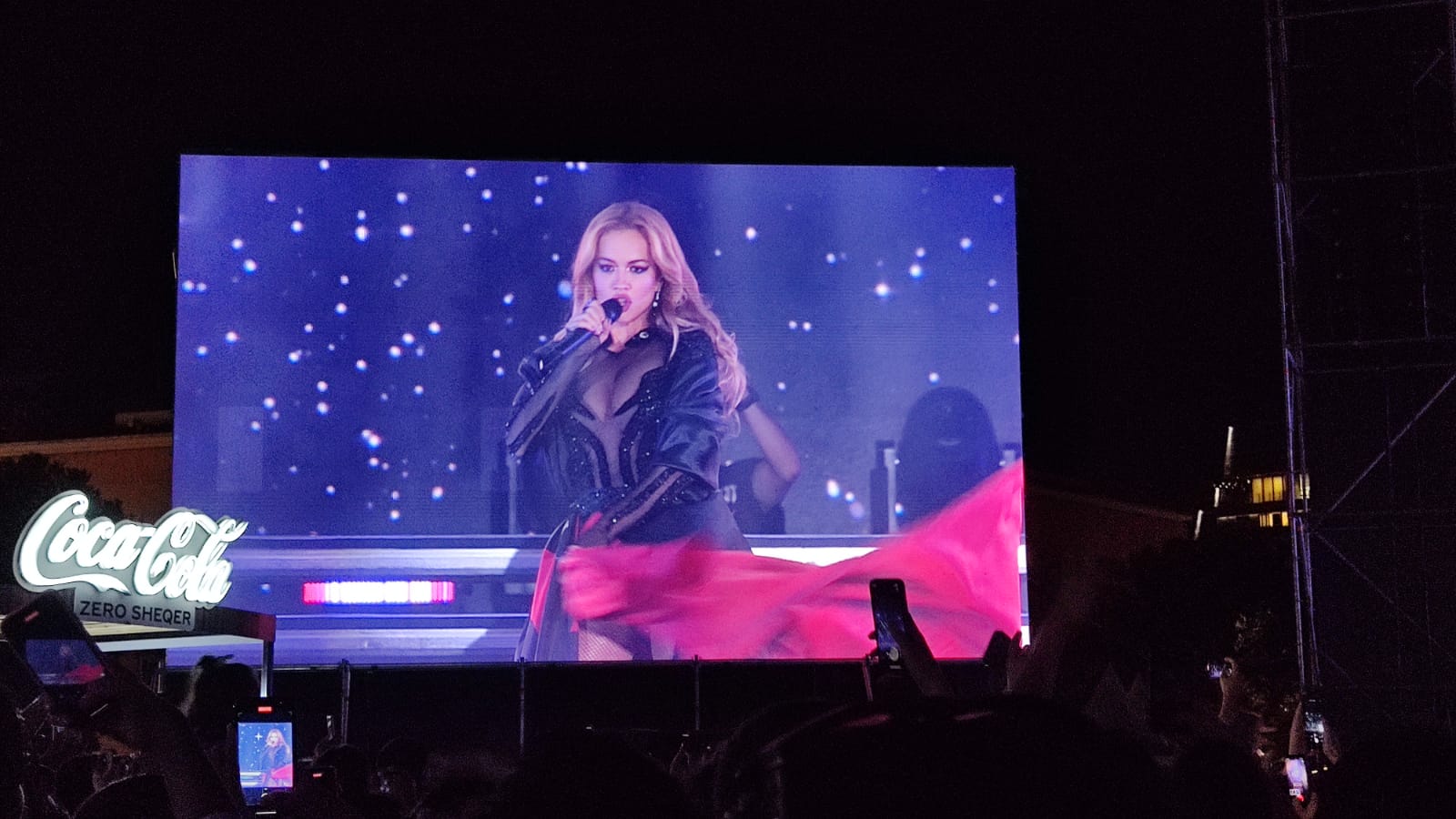 Me një veshje gjysmë transparente të zezë, ku pjesë përbërëse kanë edhe motivet popullore shqiptare, Ora dhe trupa e saj e saj e baletit kanë elektrizuar gjithë të pranishmit që në fillim të koncertit muzikor, i cili ka mbledhur me mijëra qytetarë në shesh.