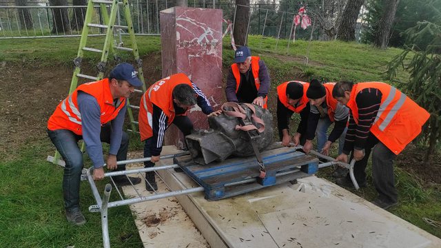 “Rehabilitohet busti i Mithat Frasherit ne Parkun e Liqenit. Zero tolerancë për vandalizmin ne qytetin tonë!