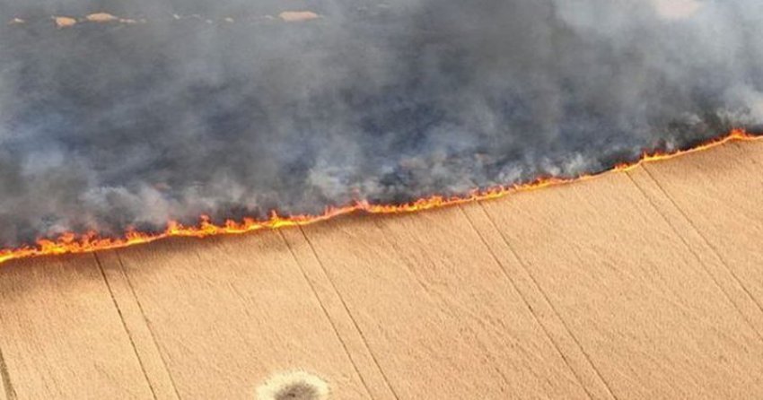 Në mediat sociale janë duke u postuar foto nga fushat e grurit në Ukrainë të cilat ndodhen nën pushtetin e zjarrit. Sipas raportimeve të Euromaidan Press, zjarri është vënë nga forcat ruse.