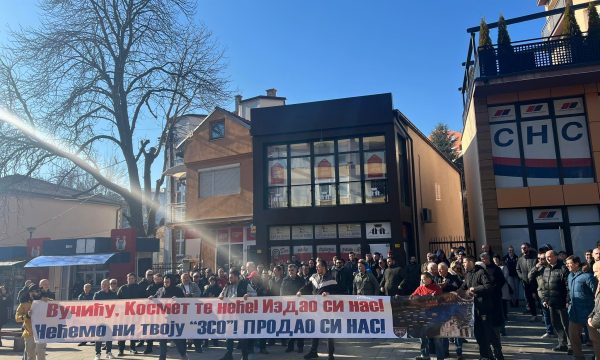 Protesta nisi pak pas orës 12:00 dhe të pranishmit shpalosën një pankartë ku shkruhej “Vuçiq – Kosmeti nuk të do, na tradhtove, Ne nuk e duam as Asociacionin tuaj, na shitët”.