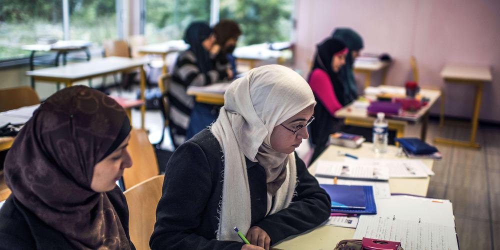 (FILES) In this photo taken on October 16, 2012 pupils study interpretations of the Koran's twelfth chapter in a classroom at the European Institute of Social Sciences (Institut Europeen des Sciences Humaines, IESH) in Saint-Leger-de-Fougeret, central France. French daily Le Monde published on August 5, 2013 report by the Frances High Council for Integration (HCI) recommending banning religious symbols in French universities. AFP PHOTO / JEFF PACHOUD FRANCE-RELIGION-ISLAM-EDUCATION-FILES