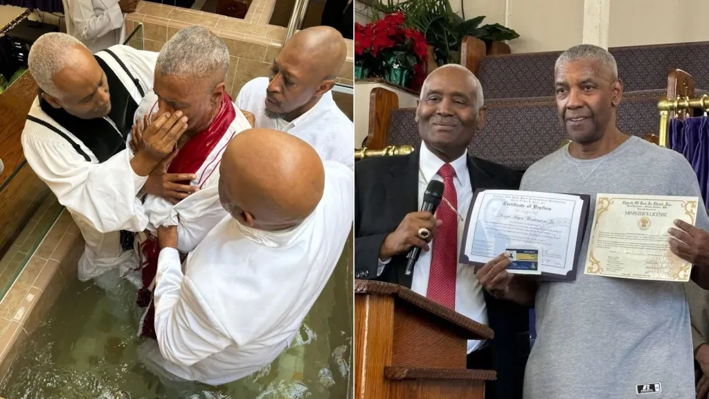Aktori i famshëm hollivudian Denzel Washington u pagëzua të shtunën në tempullin Kelly në Neë York dhe mori licencën e priftit.
