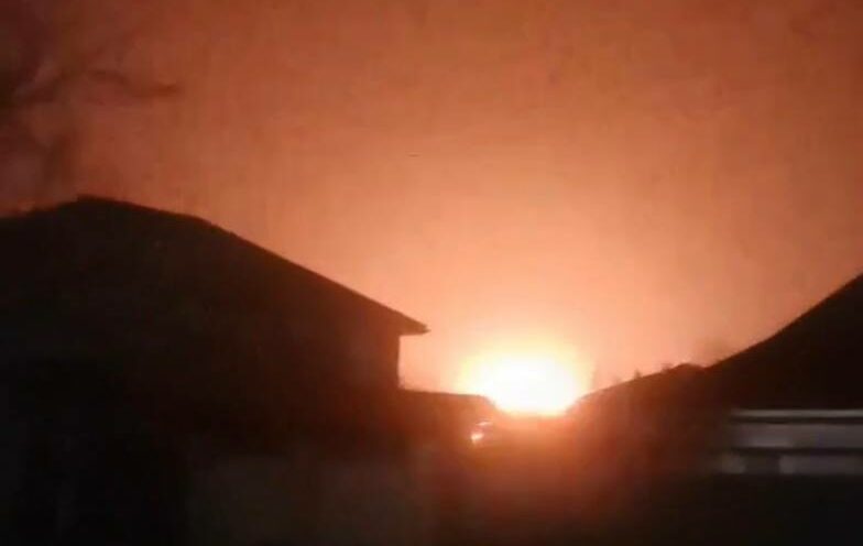 Një video amatore shfaq momentin kur ndodhë një shpërthim u fuqishëm dhe në qiell ngritet një “top i zjarrtë”.