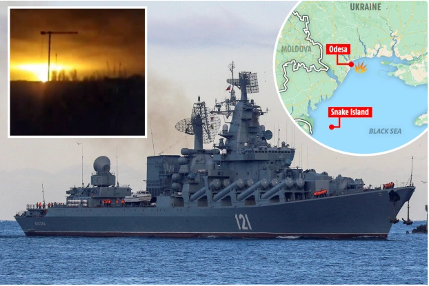 Luftanija më e madhe ruse ka shpërthyer dhe mbytur pasi ekuipazhi e braktisi në mënyrë të dëshpëruar anijen pas një sulmi me raketa tokësore të Ukrainës.