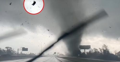 Në njërën prej videove, shihet se si tornadoja ngre në ajër një motor me 4 rrota, duke e bërë të “fluturojë”.