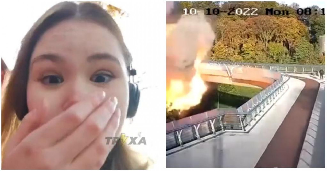 Një tjetër video e sulmit në Kiev u shfaq në rrjetet sociale. Një burrë mund të shihet duke kaluar urën pranë Harkut të Triomfit të Kievit ashtu si një predhë bie vetëm disa metra para tij.