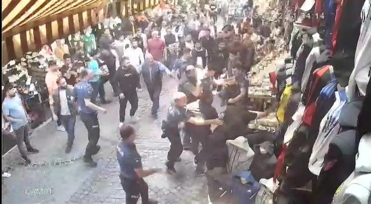 Kamerat e sigurisë regjistruan konfliktin brutal, ku mbetën të plagosur gjithsej 7 persona, mes tyre 1 polic në tregun e Stambollit.