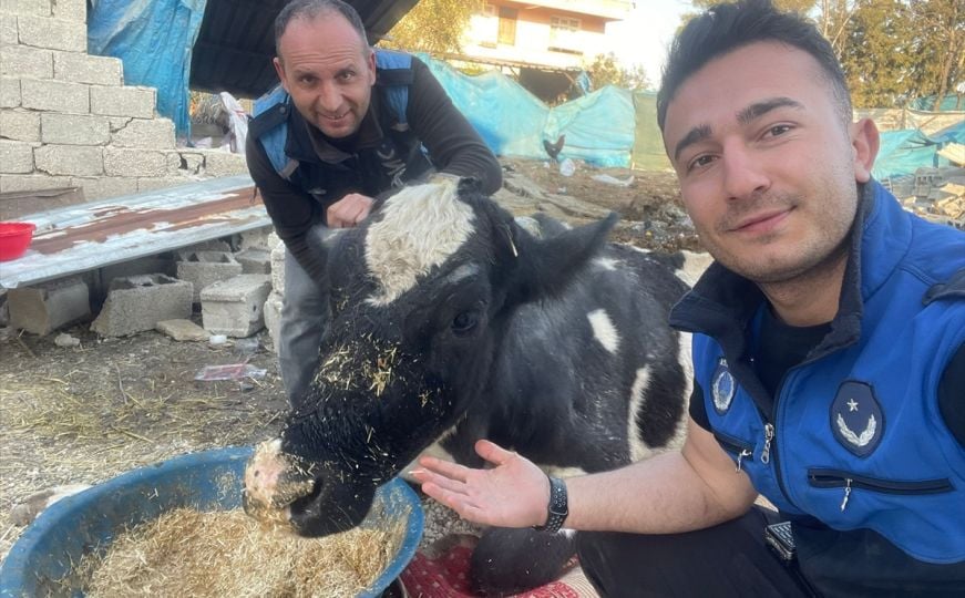 Ekipet e bashkisë Golcuk e nxorrën lopën fatlume nga rrënojat në Antakya, Hatay.